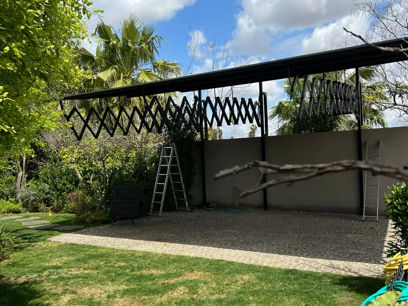 הסוכך אידיאלי לקירוי מרפסות, גינות ושטחים מסחריים גדולים, ומאפשר יצירת חלל מוצל רחב ידיים ללא עמודי תמיכה מפריעים.