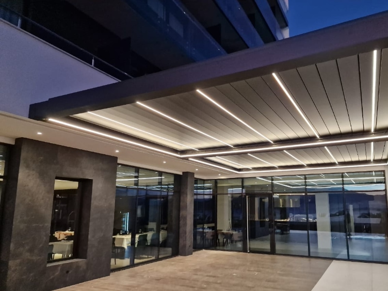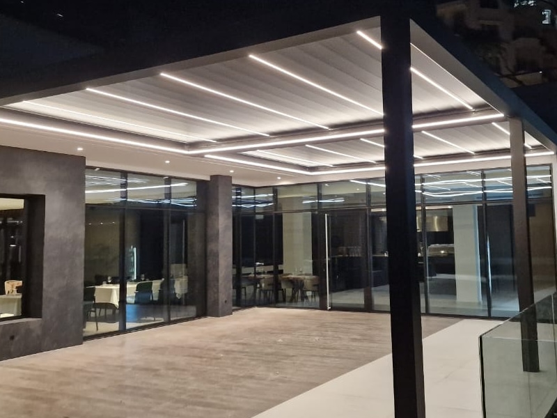 התאורה המובנית נמצאת בחלק העליון של הפרגולה כסטנדרט וחוסכת את הצורך בשילוב של תאורה חיצונית או העברת חוטי חשמל. ניתן גם ליצור אפקט של תאורה מתחלפת – RGB. באופן זה אפשר לקבל כל אווירה שרוצים בהתאם לאור המגיע מבחוץ.